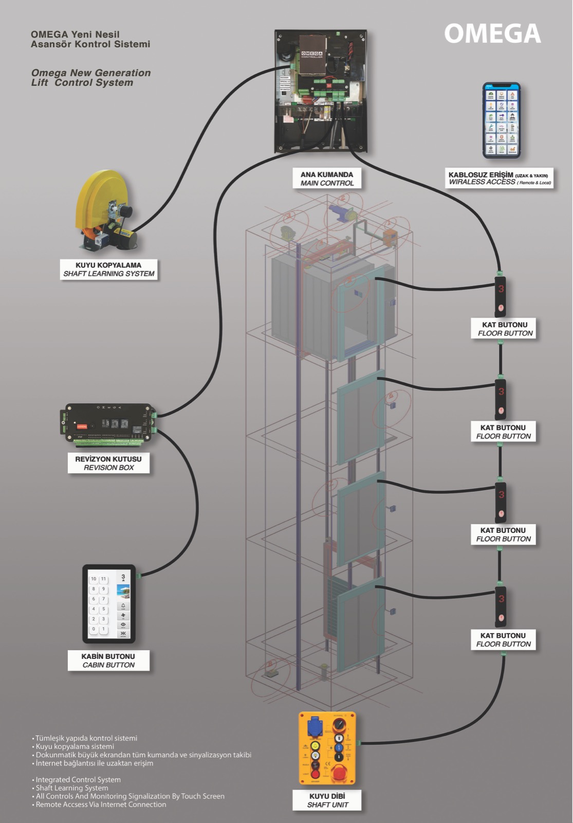 Asansör ve sürücü tüm parametre ayarlarının, kolay kullanımlı arayüzler içeren Dokunmatik geniş ekrandan, pratik dokunuşlarla yapılmasını sağlar.